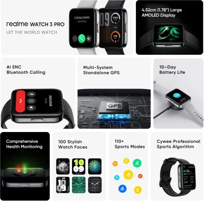 realme Watch 3 Pro 1.78″ AMOLED 368 x 448p Hi-res Smart AOD with BT Calling & GPS Smartwatch